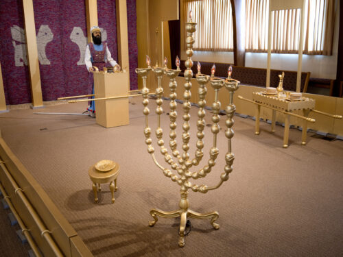 Our Tabernacle Reproduction is life-size according to descriptions recorded in Scripture. Eighteen inches was used to equal the Biblical cubit.
